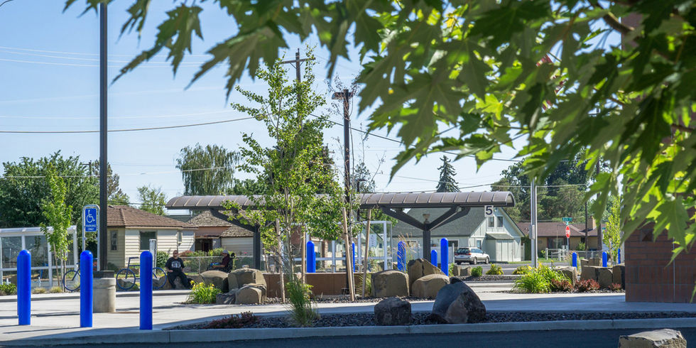 Located in downtown Moses Lake, the MTC was designed as a transportation hub for the community and outlying regional destinations. The facility serves as a hub for a range of transportation means ranging from buses to bicycles. The site was designed to accommodate several buses and other vehicles simultaneously. The landscape embraces the character of the overall region; incorporating columnar basalt, rock mulches, and drought tolerant plants and perennial grasses. Long term maintenance and resource conservation was a major design team goal; ensuring landscape operating costs were reduced to the greatest extent.