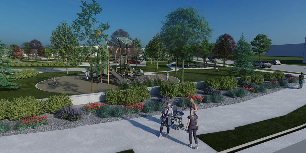 The 0.5 acre Post Community Park provides a recreational and play experience space for families in the surrounding neighborhood. Given the dense housing development, public space is crucial to the lifestyle opportunities of the community.